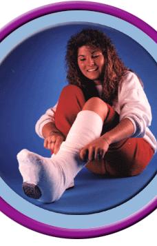 1960s woman with classic short leg plaster walking cast and rubber walking heel integrated into base of cast. |