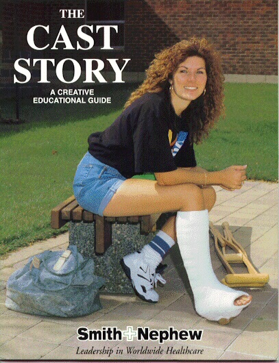 Toronto newspaper lady sporting a classic plaster walking cast in the early 1980s. Almost perfect shape - smoothly rounded around the ankle with walking heel nicely integrated into the plaster. |